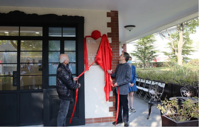 上海戏剧学院党委书记谢巍和老校长凌桂明为校史陈列馆揭牌。